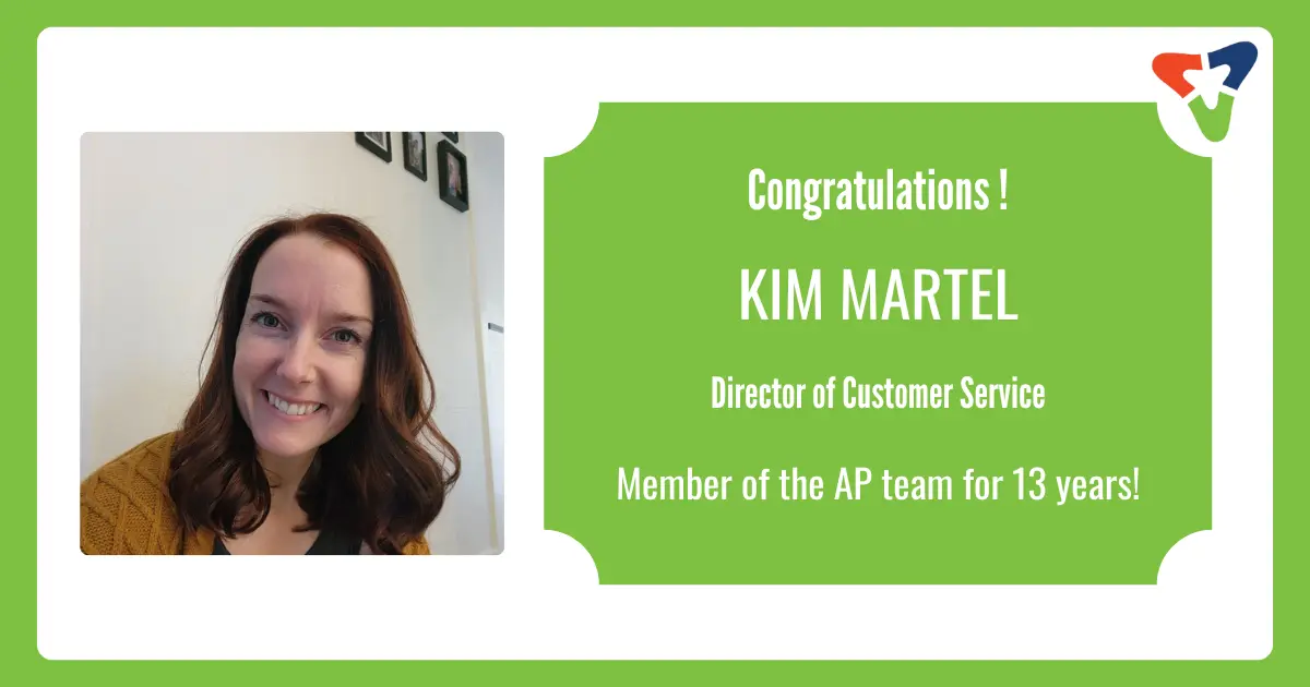 Thirteen years with the same company is a remarkable achievement these days. It is usually easy to highlight the contribution of a colleague with whom one shares a professional life; however, it becomes more delicate when it involves a member of your own family. Today, I would like to take a moment to recognize the exceptional journey of my daughter, Kim Martel.